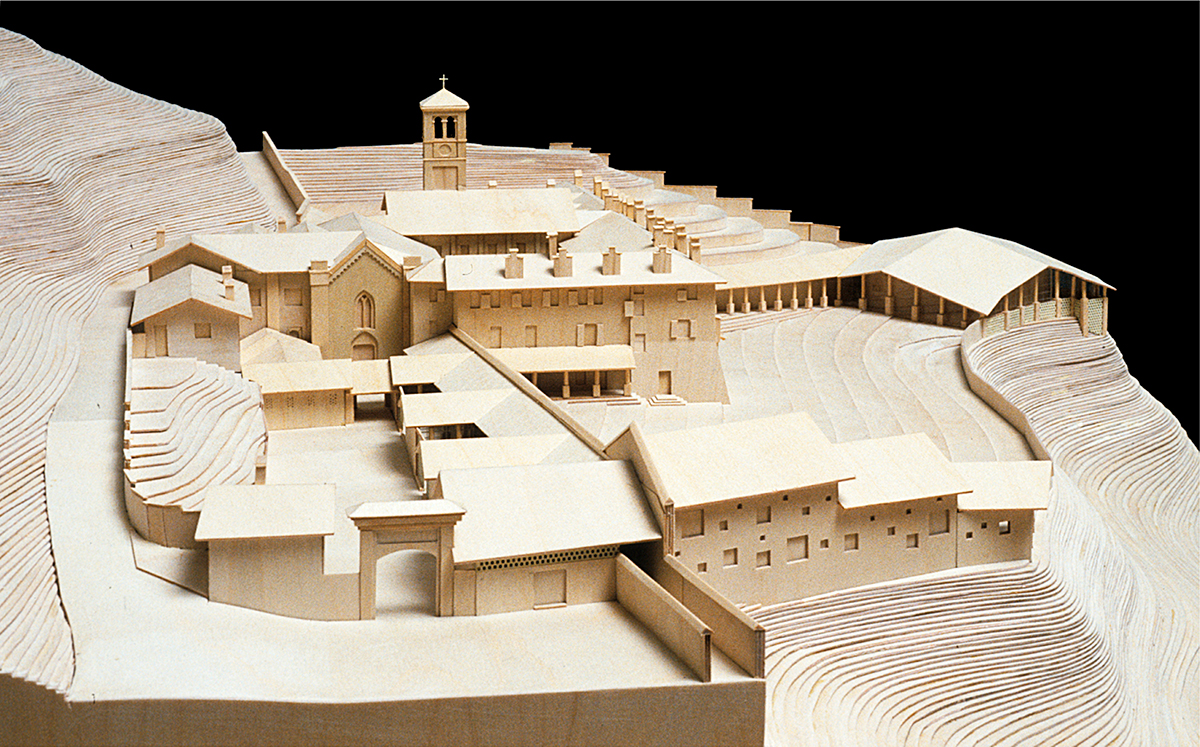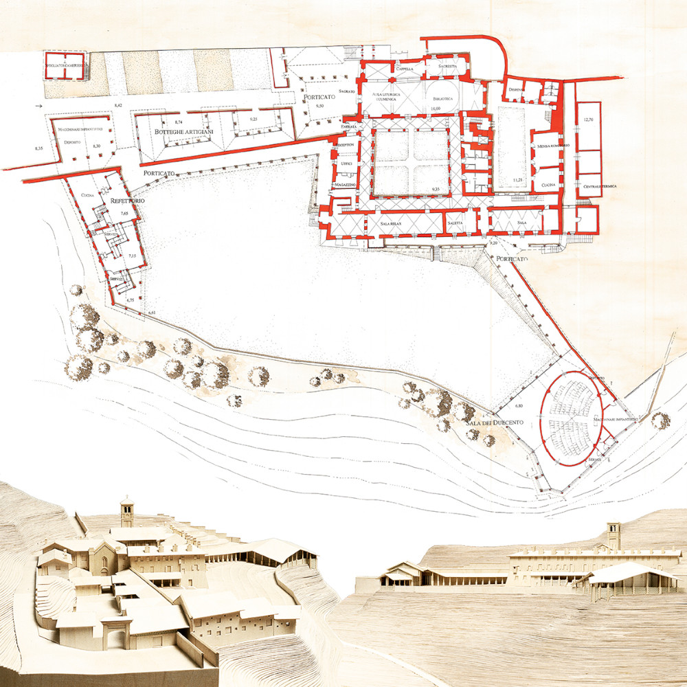 The abbey, originally built in 15th century, is in a stunning position at the entrance of the Susa valley and in face of the Benedectine 10th century Sacra di San Michele. As to the preservation program, that was conducted in collaboration with the local preservation authorities, the general approach was to eliminate all the recent additions and to restore as much as possible the original simplicity of typology as well as of decoration.